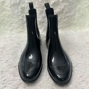Lauren Ralph Lauren Black Shiny Waterproof Rubber Ankle Rain Boots size 7B