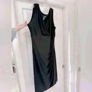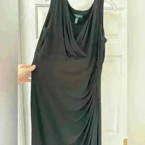 Lauren Ralph Lauren Black Sleeveless Faux Wrap Dress With Ruching Size 16W