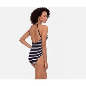 Lauren Ralph Lauren Black Stripe High Halter Neck One Piece Size 6