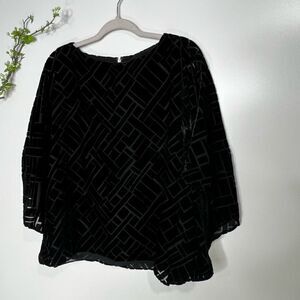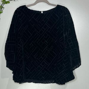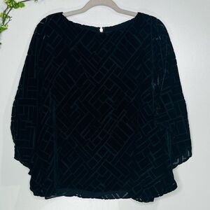 Lauren Ralph Lauren Black Velvet Geometric Flutter Sleeve Blouse