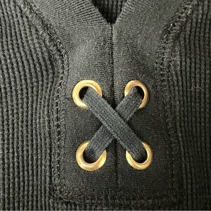 Lauren Ralph Lauren Black Waffle Knit Blouse Goth Grunge Witchy Vampy XL gorpcor