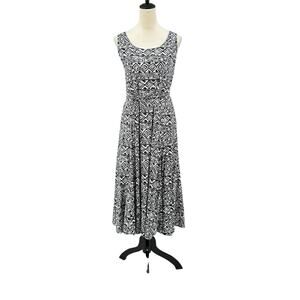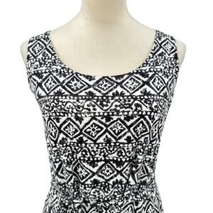 Lauren Ralph Lauren Black & White Geometric Print Soft Midi Tank Dress