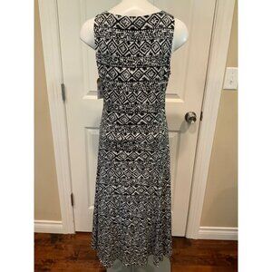 Lauren Ralph Lauren Black & White Geometric Sleeveless Trapeze Midi Dress Size M