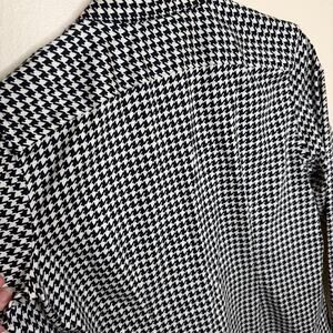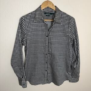Lauren Ralph Lauren Black White Houndstooth Button-Down Non-Iron Shirt Large. Preowned and in great condition. Top is 100% cotton, button closure at wrist, soft and comfy. Please see all photos. Approx measurements in pictures.