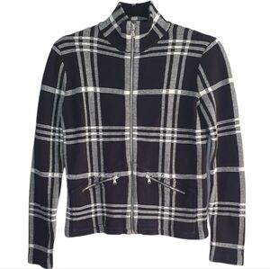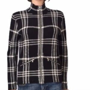 Lauren Ralph Lauren Black White Knit Full Zip Cardigan Sweater Women SP Preppy