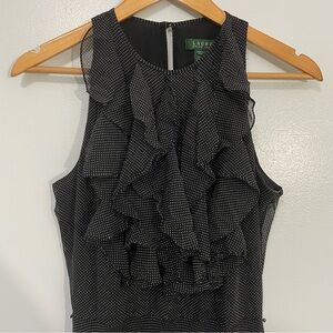 Lauren Ralph Lauren Black White Silk Polka Dot Ruffle Cruise Party Dress 10