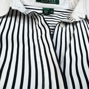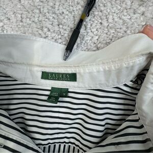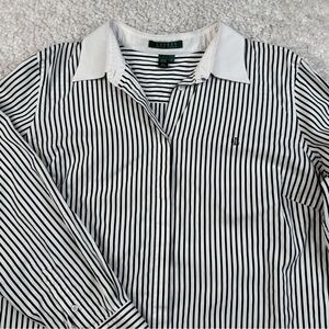 Lauren Ralph Lauren Black White Striped Button Up Shirt with Monogram. 1X