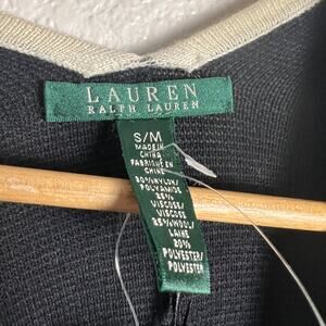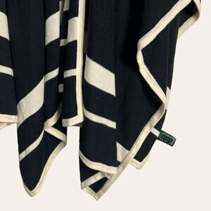 Lauren Ralph Lauren Black White Striped Wool Cardigan Cape Shawl Ruana Size M