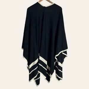 Lauren Ralph Lauren Black White Striped Cape Shawl Ruana Size S/M