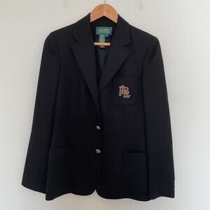 Lauren Ralph Lauren Black Wool Initial's RLL Crest Button Blazer Jacket Sz 6