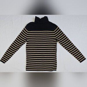 Lauren Ralph Lauren Black & Gold Metallic Stripe Ribbed Turtleneck Sweater