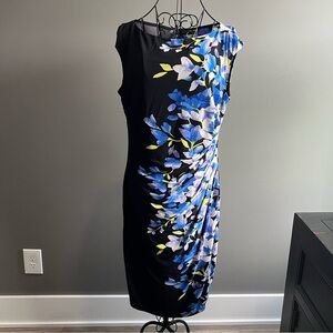 Lauren Ralph Lauren Black and Blue Floral Sheath Dress Size 10