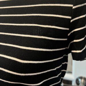 Lauren Ralph Lauren Black and White Striped Crew Neck Cotton T-Shirt