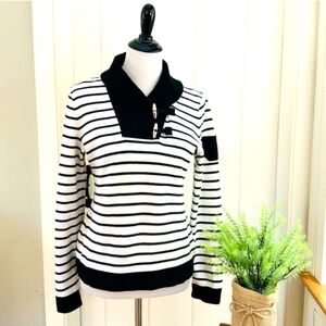 [Lauren Ralph Lauren] Black and White Striped Toggle Lightwight Sweater Size SP