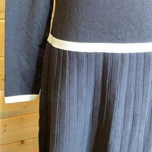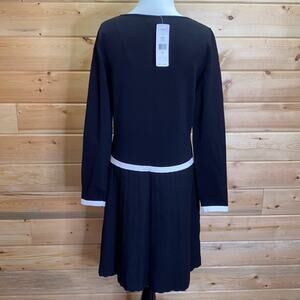 Lauren Ralph Lauren Black with White Trim Pleated Long Sleeve Dress Medium NWT