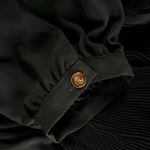 Duong pleated sophistication meets timeless elegance in this Lauren Ralph Lauren Tie Neck Long Sleeve Blouse. Tailored for a relaxed fit, the blouse features a sleek black hue that makes it a versatile addition to any wardrobe. Its georgette fabric offers a delicate, fluid drape, while the micro-pleated details add a subtle texture that catches the eye.