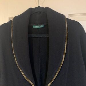 Lauren Ralph Lauren Black/Gold Shawl Collar Wool Sweater sz L