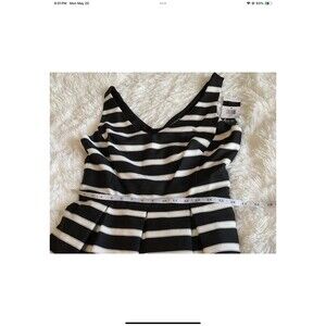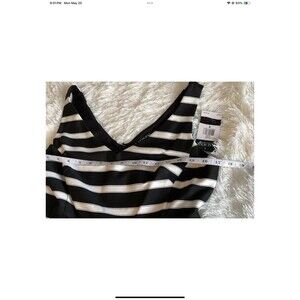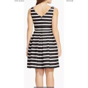 Lauren Ralph Lauren Black/Ivory Stripe Sateen V-Neck Fit & Flare Dress Sz 8 NEW