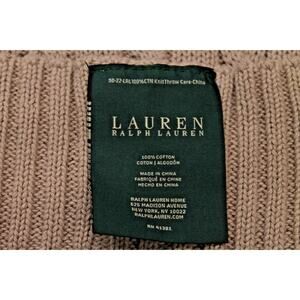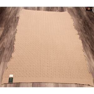 Lauren Ralph Lauren Blanket Cable Knit 100% Cotton Beige Throw 50x70in