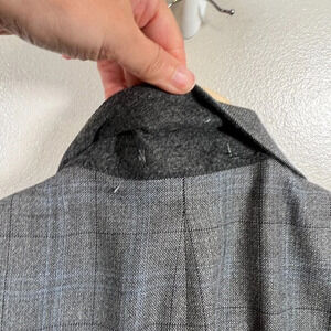 Lauren Ralph Lauren Blazer Jacket Mens Size 44R Silk Wool Gray Plaid Sport Coat