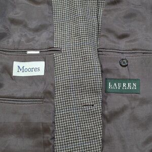 Lauren Ralph Lauren Blazer Mens US 52R Houndstooth Tweed Wool Lined 2B 2 Vented