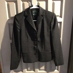 Lauren Ralph Lauren Blazer Sz2P Dark Gray Notched Collar 3 Button Pockets Pre-Ow