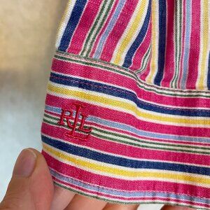 Lauren Ralph Lauren Blouse 100% Linen Multicolor Striped Long Sleeve Button Up