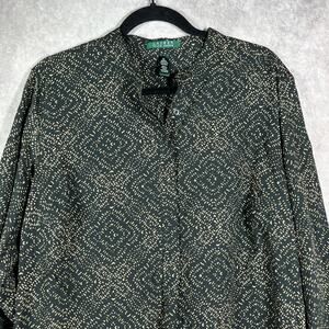 Lauren Ralph Lauren Blouse Womens 1X Black Dotted Popover Artsy Mature Office