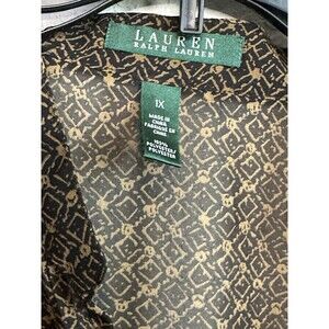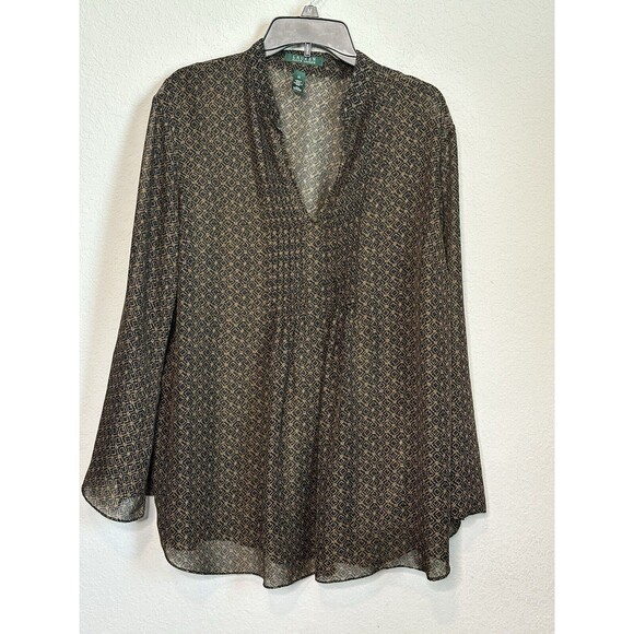Lauren Ralph Lauren Blouse Womens 1X Brown Sheer Pleated Front Polyester Top