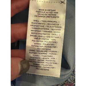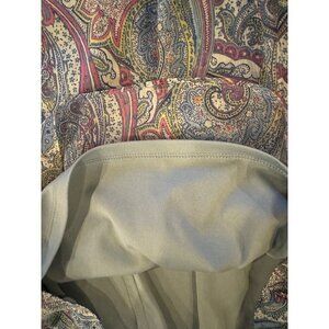 This dress from Ralph Lauren is in excellent condition. It is in blue and purple colors in an allover paisley print. It features; crew neckline, buttoned keyhole back, Ruffled sides, Short ruffle cap sleeve, Shift silhouette, fully lined and is in a mini length. It is crafted from 100% polyester.