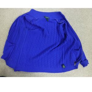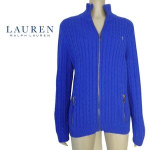Lauren Ralph Lauren Blue Cable Knit Gold Zipper Zip Up Sweater