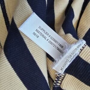 Lauren | Ralph Lauren Blue Cream Striped Long Sleeve sz Small Leather Shoulder. care instructions tag was removed. measurements are approximately: pit to pit 18 inches. sleeve length 25.5 inches. top to bottom 25.5 inches.