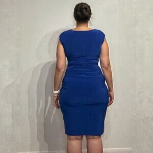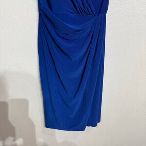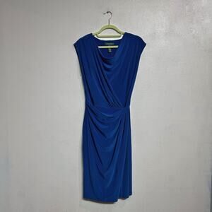 Lauren Ralph Lauren Blue Faux Wrap Ruched Side Slit Midi Dress Sz 8