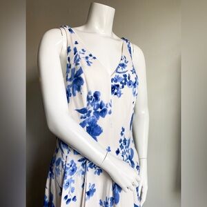 Lauren Ralph Lauren Blue Floral Dress Aline Career Wedding Cocktail Victorian 10