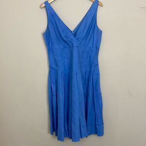 Lauren Ralph Lauren Blue Linen Drop Waist Pleated Skirt Dress size 14 Summer