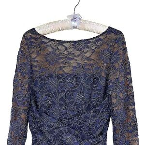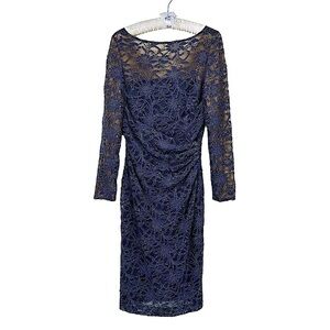 Lauren Ralph Lauren Blue Long Sleeve Stretch Lace Dress with Sequins Size 6