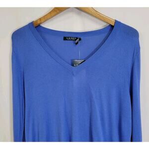 Lauren Ralph Lauren Blue Modal Silk Blend V-Neck Lightweight Sweater Size XL NWT.
