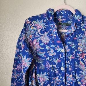 Lauren Ralph Lauren Blue Paisley Button Down Boho Multicolor Floral Top M