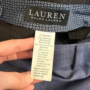 Lauren Ralph Lauren men’s dress pants, blue plaid wool blend trousers, Ralph Lauren tailored flat front pants, men’s plaid slacks, formal work pants, business casual wool trousers, executive menswear, tailored Ralph Lauren office pants