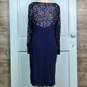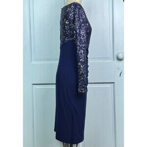 Lauren Ralph Lauren Blue Sequin Cocktail Dress Sheath Long Sleeve Ruched Skirt L