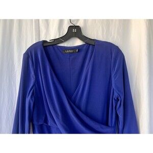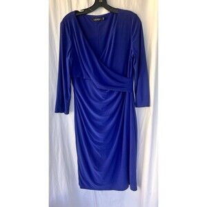 Lauren Ralph Lauren Blue Stretch Jersey Ruched Wrap Sheath Dress 14 Career Work