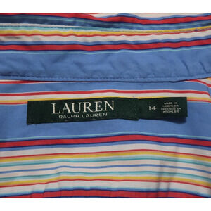 Lauren Ralph Lauren Blue Striped Button-Down Collared Long Sleeve Sz 14 Preppy