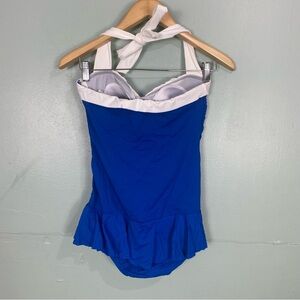 Lauren Ralph Lauren Blue White One Piece Bikini Swimsuit Sz 12