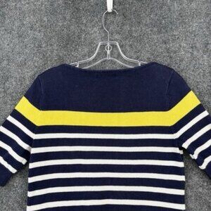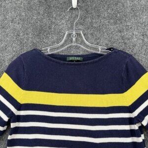 Lauren Ralph Lauren Blue White Yellow Striped Boat Neck Sweater Women’s Medium