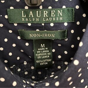 Lauren Ralph Lauren Blue/White Polka Dot Non-Iron Button Up Shirt Size Medium
