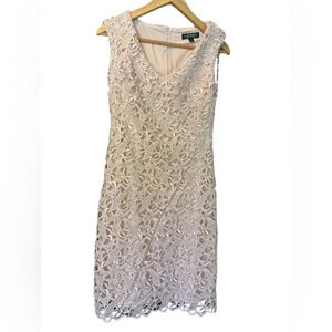 Lauren Ralph Lauren Blush Pink Lace Cut Out Scoop Neck Cap Sleeve Dress Size 2