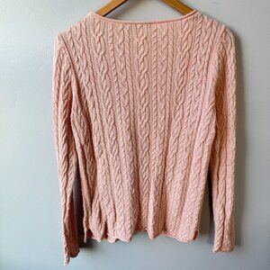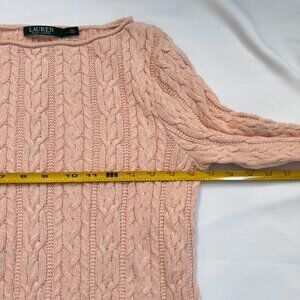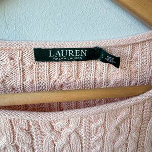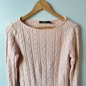 Lauren Ralph Lauren Blush Pink Long Sleeve Cable Knit Sweater Large Scoop Neck