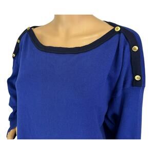 Lauren Ralph Lauren Boatneck Button Shoulder Sweater Royal Blue Size 3X Pullover