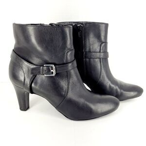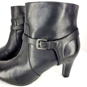 Lauren Ralph Lauren Boots Black Leather Upper 3" Block Heel Saida Size 8.5B EUC