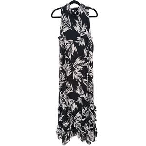 Lauren Ralph Lauren Botanical Georgette Maxi Dress Gown Black White 12 Event
